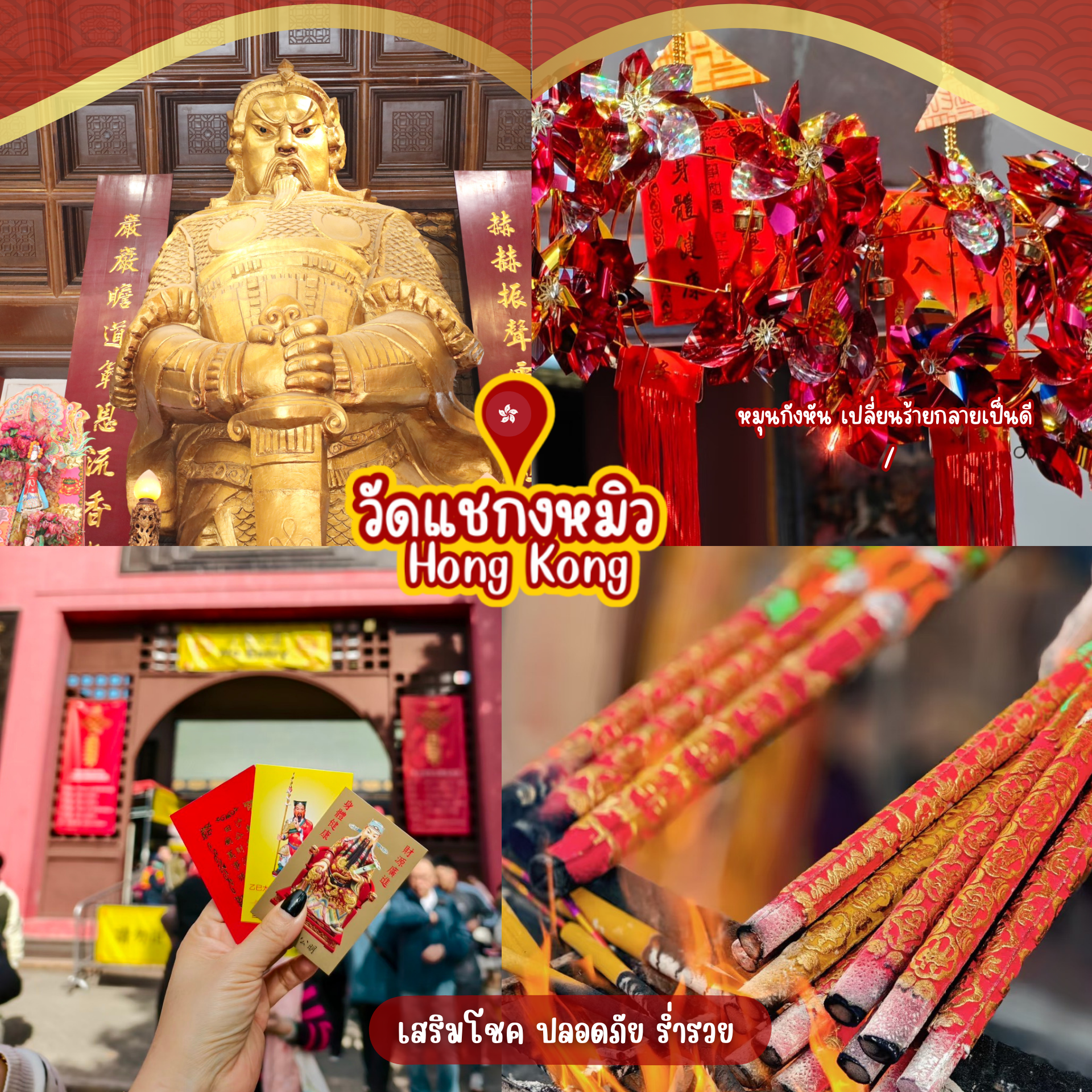 เป็นวัดเก่าแก่และมีชื่อเสียงมากในฮ่องกง โดดเด่นเรื่องความศักดิ์สิทธิ์ในการขอพรเรื่องโชคลาภ การงาน การเงิน และการป้องกันภัย โดยเฉพาะการหมุนกังหันลมกลับทิศเพื่อพลิกชีวิตจากร้ายกลายเป็นดี